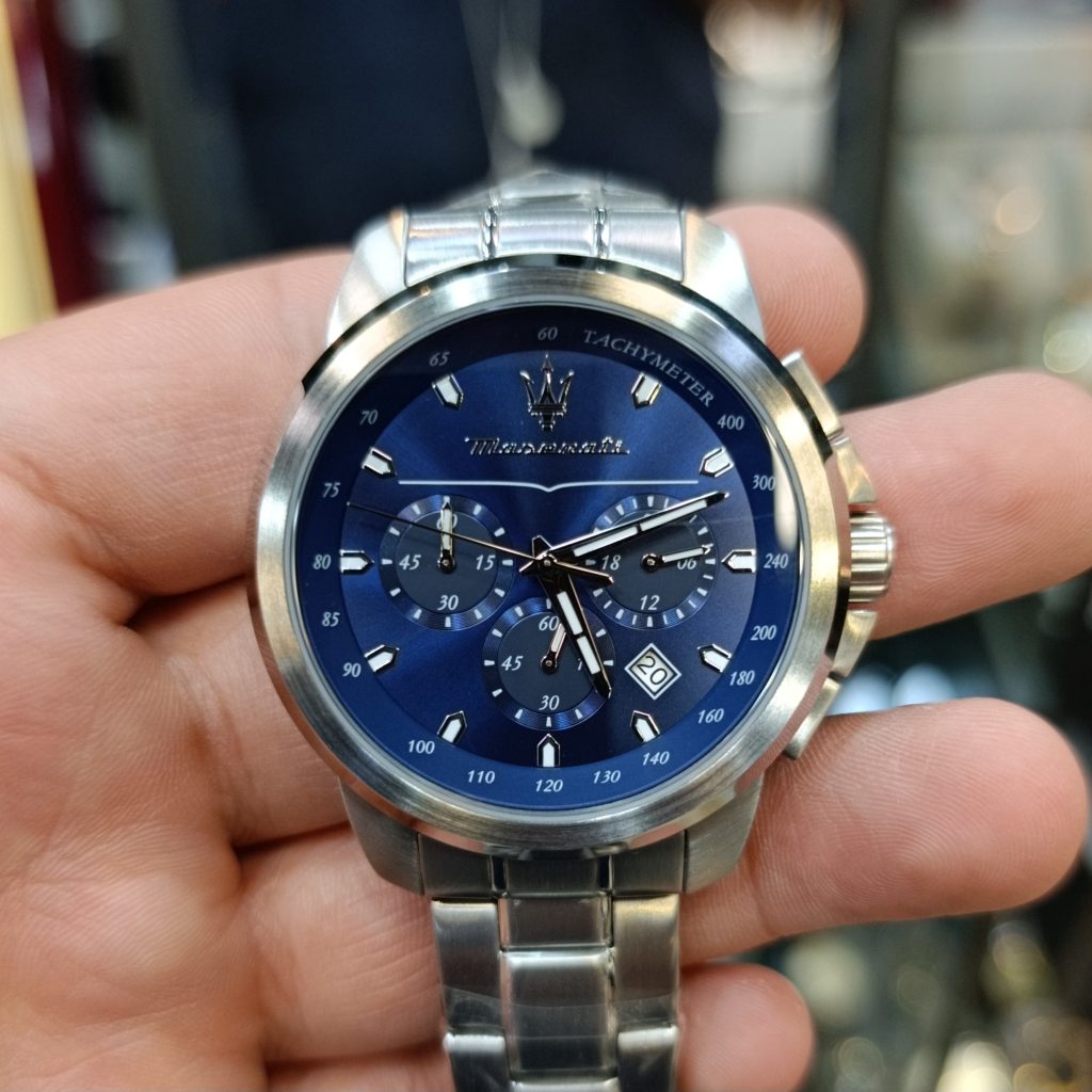 صفحه (Dial): آبی متالیک با عقربهها و اندکسهای شبتاب